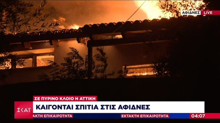 Τώρα: Καίγονται σπίτια μεσα στην νύχτα στις Αφίδνες (Βιντεο)