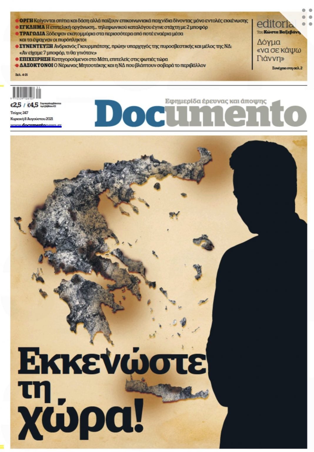 Τα λέει όλα: Εκκενωστε τη χώρα. Με αυτο τον τίτλο κυκλοφορεί αύριο το Documento.