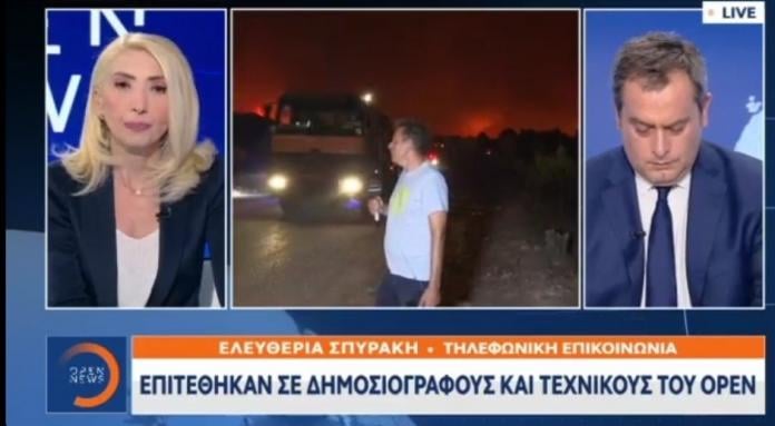 Συμφωνα με την δημοσιογράφο Ελευθερία Σπυράκη ομάδα περίπου 15 ατόμων τους επιτέθηκε, έσπασε τα τζάμια του αυτοκινήτου, χτύπησε τον δημοσιογράφο Κώστα Αλατζά, έκλεψε τον οπερατέρ και κατέστρεψε εξοπλισμό του καναλιού, ενώ στην επίθεση έλαβαν μέρος τουλάχιστον 15 άτομα, τα οποία είχαν μια τεράστια οργή κατά των καναλιών… και έβριζαν τους δημοσιογράφους που τους χαρακτηρίζουν ψεκασμένους.