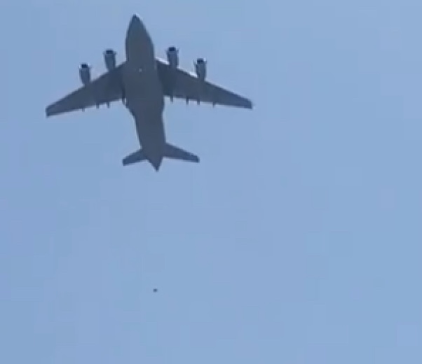 Σε ένα βίντεο που δημοσίευσε στο Twitter το πρακτορείο Asvaka δείχνει ανθρώπους να πέφτουν στο κενό από ένα αεροπλάνο που αναχωρεί από την Καμπούλ. Το πρακτορείο κάνει λόγο για δύο άτομα που πέφτουν από το αεροσκάφος καθώς αυτό κερδίζει ύψος, ωστόσο η γνησιότητα του βίντεο δεν έχει επιβεβαιωθεί.