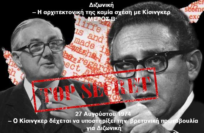 Το τηλεγράφημα ΕΠΙΒΕΒΑΙΩΣΗ του Βρετανού αξιωματούχου S. J. Killick 27/8/1974 από την Ουάσιγκτον προς Κάλλαχαν ενημερώνοντάς τον αυθημερόν ότι ο Κίσινγκερ δέχθηκε να υποστηρίξει ΤΗΝ ΠΟΛΙΤΙΚΗ ΤΟΥΣ , ΤΗΝ ΔΙΠΕΡΙΦΕΡΕΙΑΚΗ ΟΜΟΣΠΟΝΔΙΑ (όπως την είχαν αρχικά ονομάσει δηλαδή την ΔΔΟ) ως την μόνη ρεαλιστική λύση. “He agreed the solution we had in mind (a bi-regional federation…) was the only realistic one».