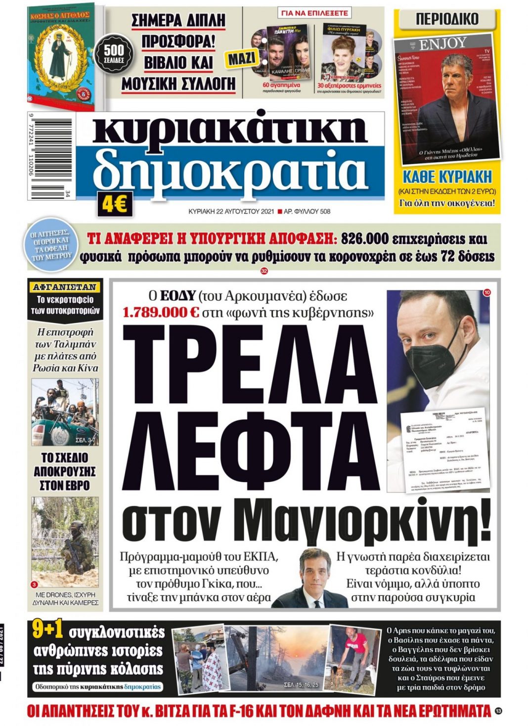 Αποκαλυπτική και μαχητική οπως καθε Κυριακή η Δημοκρατια, κυκλοφορεί σημερα με αποκαλυπτικό ρεπορτάζ για τον ΕΟΔΥ.