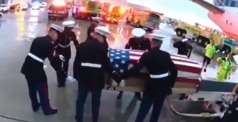 Υποδοχή με τιμές ήρωα οπως άλλωστε το συνηθίζουν οι Αμεριανοι στους νεκρούς τους στρατιώτες σε όλο τον κόσμο, μεσα σε ένα κλίμα οδύνης.