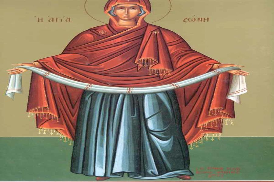 Η ανακομιδή της τίμιας Ζώνης της Θεοτόκου, άλλοι λένε ότι έγινε από το βασιλιά Αρκάδιο και άλλοι από το γιο του, Θεοδόσιο τον Β’. Η μεταφορά έγινε από την Ιερουσαλήμ στην Κωνσταντινούπολη και την τοποθέτησαν σε μια χρυσή θήκη, που ονομάσθηκε αγία Σωρός. Όταν πέρασαν 410 χρόνια, ο βασιλιάς Λέων ο Σοφός άνοιξε την αγία αυτή Σωρό για τη βασίλισσα σύζυγό του Ζωή, που την διακατείχε πνεύμα ακάθαρτο. Όταν λοιπόν άνοιξε την αγία Σωρό, βρήκε την τίμια Ζώνη της Θεοτόκου να ακτινοβολεί υπερφυσικά. Και είχε μια χρυσή βούλα, που φανέρωνε το χρόνο και την ήμερα που μεταφέρθηκε στην Κωνσταντινούπολη. Αφού λοιπόν την προσκύνησαν, ο Πατριάρχης άπλωσε την τίμια Ζώνη επάνω στη βασίλισσα και αμέσως αυτή ελευθερώθηκε από το δαιμόνιο. Οπότε όλοι δόξασαν το Σωτήρα Χριστό και ευχαρίστησαν την πανάχραντη Μητέρα Του, η οποία είναι για τους πιστούς φρουρός, φύλαξ, προστάτις, καταφυγή, βοηθός, σκέπη σε κάθε καιρό και τόπο, ήμερα και νύκτα.