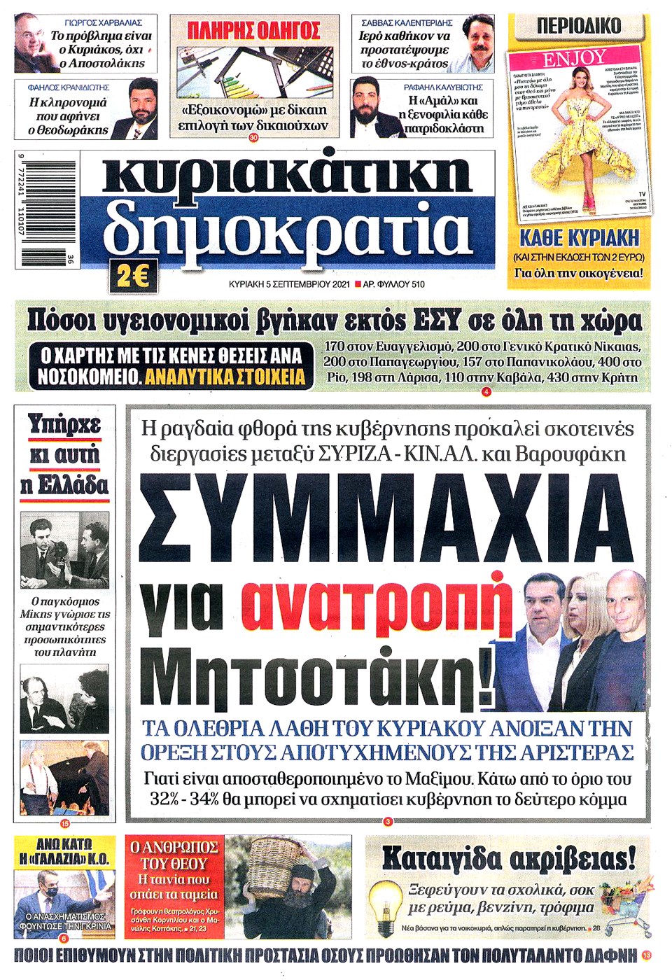 Η Κυριακάτικη Δημοκρατια αποκαλύπτει κρυφές διεργασίες μεταξύ των προοδευτικών δυνάμεων της αντιπολίτευσης με στόχο τη συμμαχία ώστε να καταφέρουν να διώξουν τον Μητσοτάκη.