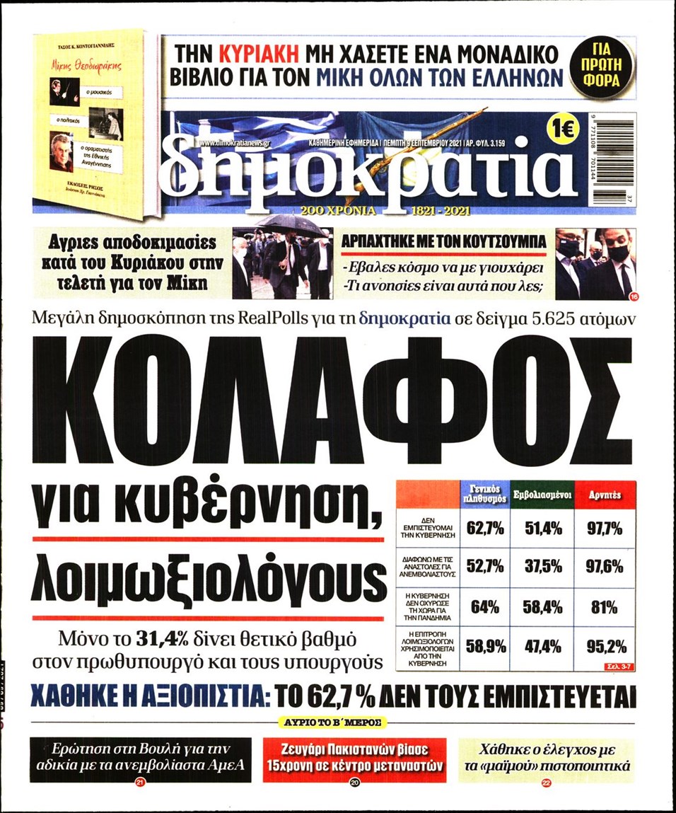 Η δημοσκόπηση που δημοσιεύει σήμερα η εφημερίδα «δημοκρατία» αποτυπώνει με κάθε λεπτομέρεια αυτό που επικρατεί τα τελευταία δύο χρόνια στην Ελλάδα. Οι πολίτες δεν εμπιστεύονται την κυβέρνηση Μητσοτάκη.