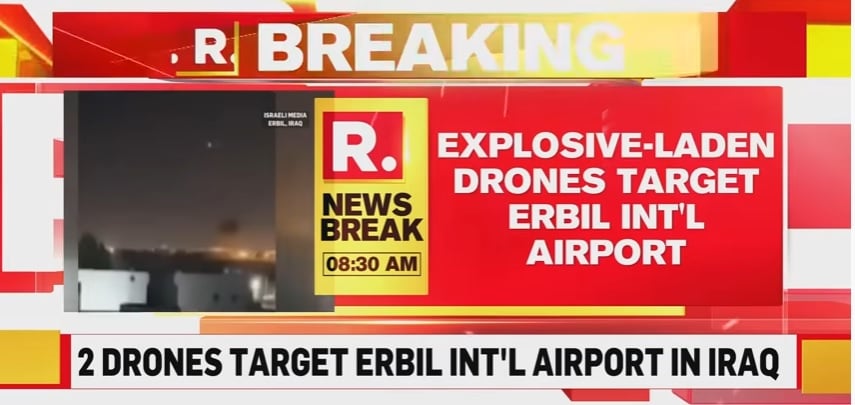 Η εσωτερική υπηρεσία ασφαλείας για την αυτόνομη κουρδική περιοχή του Ιράκ, πρωτεύουσα της οποίας είναι το Ερμπίλ, ανέφερε αρχικά ότι τρεις ρουκέτες έπεσαν κοντά στο αεροδρόμιο… Μια δεύτερη δήλωση της κουρδικής αντιτρομοκρατικής δύναμης ανέφερε ότι η επίθεση πραγματοποιήθηκε από μη επανδρωμένα αεροσκάφη με εκρηκτικά. «Δεν υπάρχουν θύματα στην επίθεση που πραγματοποιήθηκε από δύο οπλισμένα μη επανδρωμένα αεροσκάφη», αναφέρεται στην ανακοίνωση.