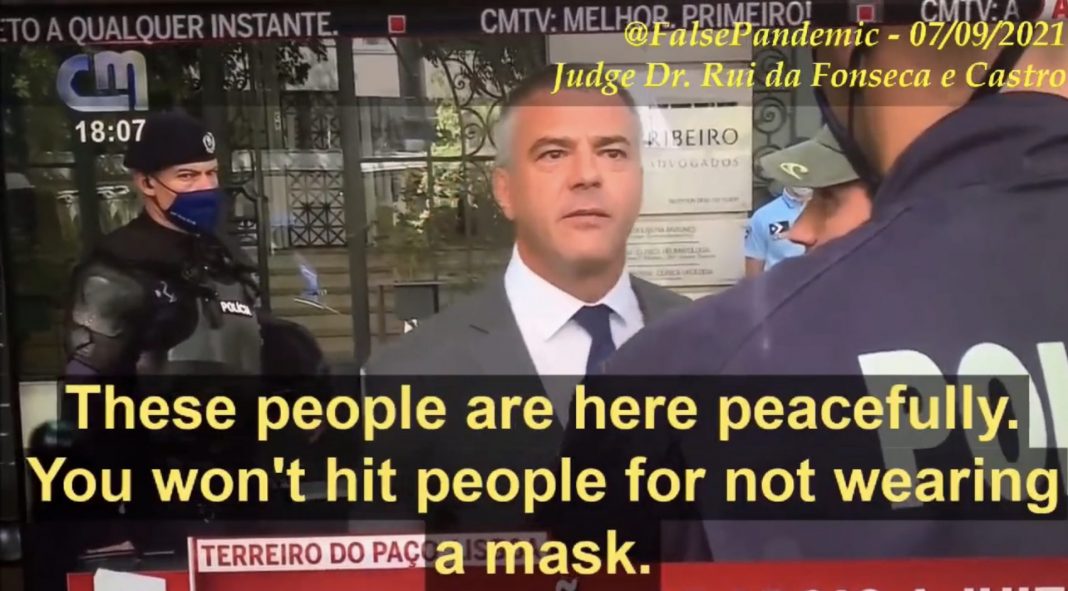 Ο πορτογάλος δικαστής στέκεται μπροστά στις αστυνομικές δυνάμεις και τις προειδοποιεί να μην αγγίξουν τους διαδηλωτές, οι οποίοι διαδηλώνουν ειρηνικά αλλά δεν φορούν μάσκα. Μία συγκλονιστική εικόνα που προκαλεί αίσθηση. Υπάρχουν εντέλει χώρες που έχουν δικαστές.