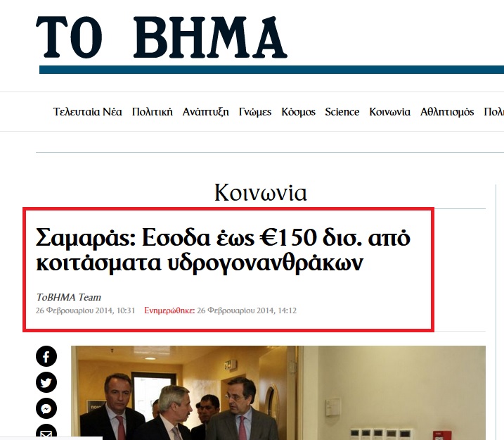 Από τα 150 δισ. ευρώ του Σαμαρά από υδρογονάνθρακες, στο δεν θα σκάβουμε στο αιγαίο – κινούμαστε σε διαφορετικές πηγές ενέργειας… Πρωτοσελιδα – Ειδήσεις