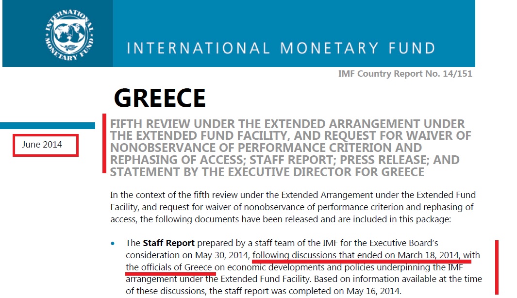 Ακολουθεί η έκθεση της 5ης αναθεώρησης των Μνημονίων του Ιουν. 2014 (κυβέρνηση Νέας Δημοκρατίας) με πρωθυπουργό τον Αντώνη Σαμαρά…