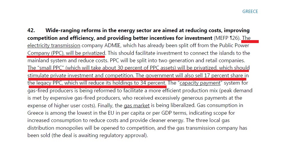 Η έκθεση αναφέρει ότι θα πρέπει να ιδιωτικοποιηθεί η ΔΕΗ και η κυβέρνηση θα πουλήσει το 17% της εταιρείας…