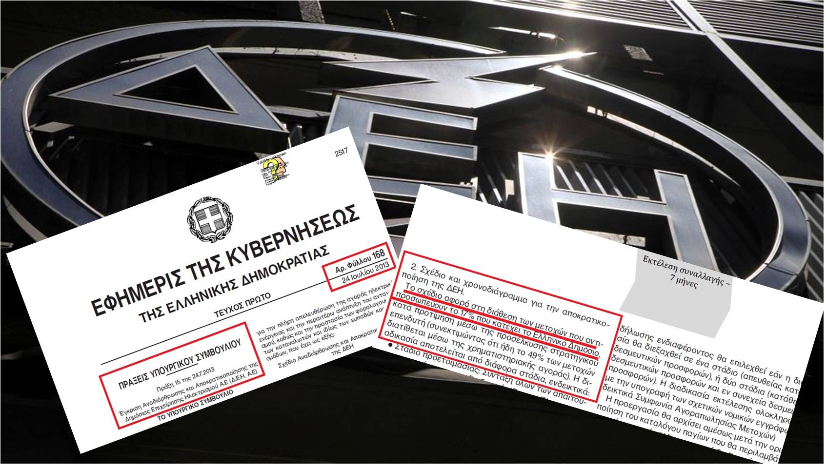 Το 2013 με το ΦΕΚ 168 Α, 24/7/2013, στο πλαίσιο των αξιολογήσεων της τρόϊκας, αποφασίσθηκε η διάθεση των μετοχών της ΔΕΗ, που αντιπροσωπεύουν το 17% που κατέχει το Ελληνικό Δημόσιο και στις 24 Σεπτεμβρίου 2021 έγινε πράξη… Πρωτοσελιδα – Ειδήσεις