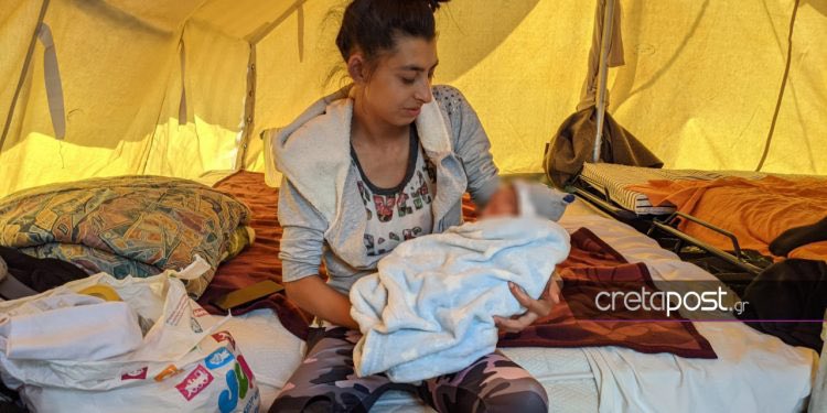 Σε σκηνή 10 ημερών βρέφος που έμεινε άστεγο μαζί με την οικογένειά του από τον καταστρεπτικό σεισμό των 5,8 Ρίχτερ στο Αρκαλοχώρι.