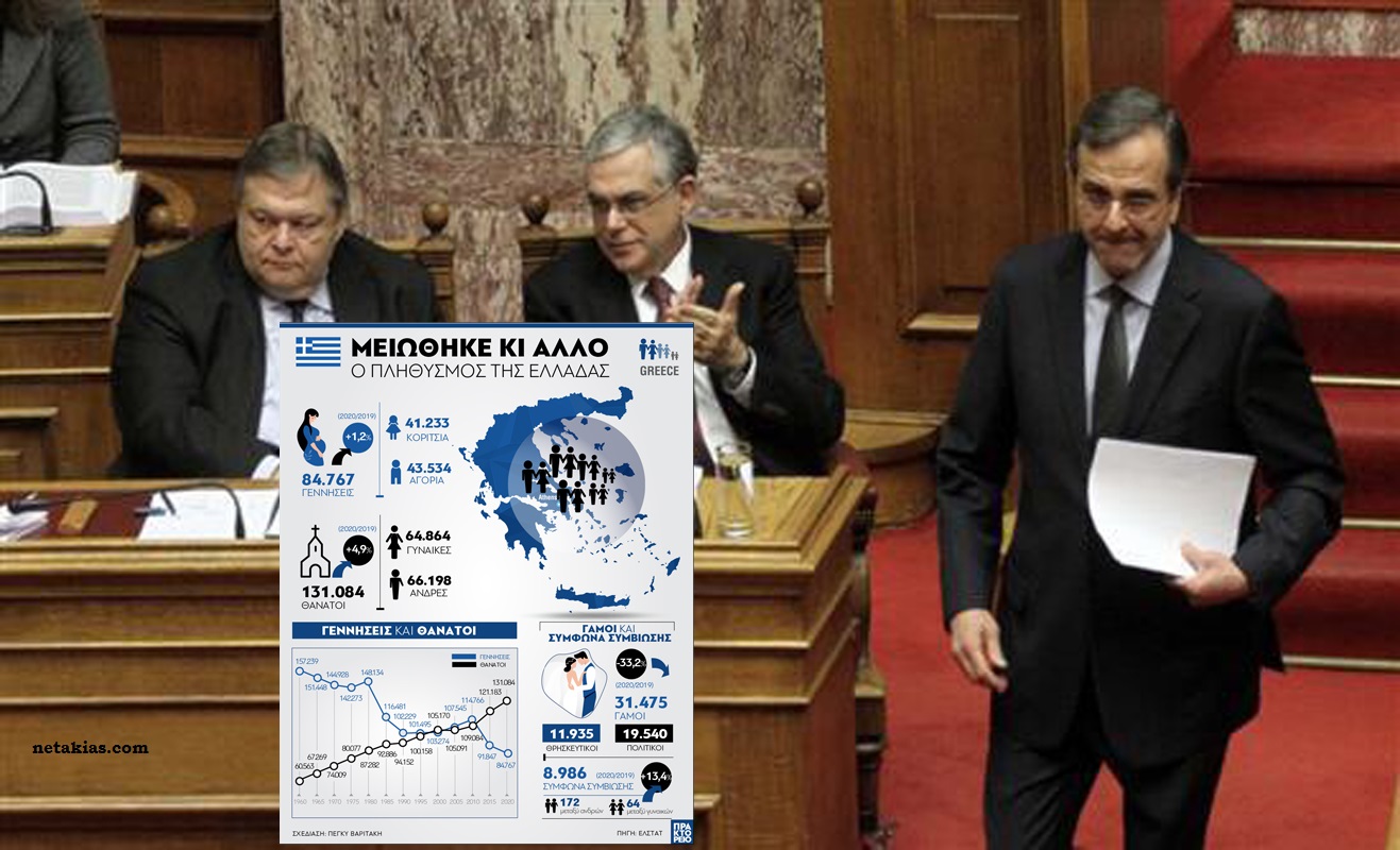 Την περίοδο 1/1/2011-1/1/2020, με βάση τις εκτιμήσεις της ΕΛΣΤΑΤ, ο μόνιμος πληθυσμός της χώρας μας μειώθηκε κατά 3,7% (-405.000 άτομα).