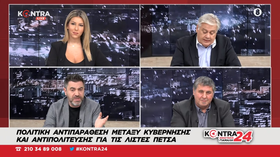 Ο Δημοσιογράφος Δημήτρης Ριζούλης της Διευθυντής της εφημερίδας ΔΗΜΟΚΡΑΤΙΑ στο Kontra24 με την Αναστασία Γιάμαλη