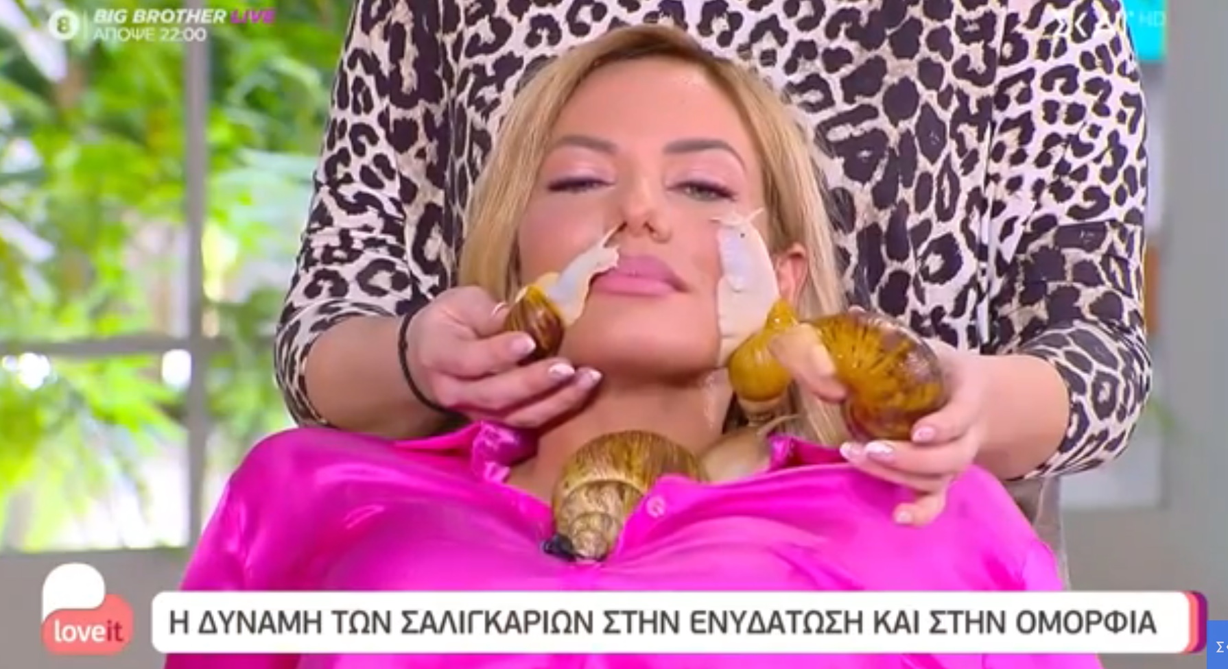 Στην προσπάθειά της λοιπόν να γίνει ξανά θέμα στα ΜΜΕ, η Ιωάννα Μαλέσκου έβαλε στο πρόσωπό της ζωντανά σαλιγκάρια, τα οποία υποτίθεται είναι μέρος κάποιας επαναστατικής θεραπείας για ανάπλαση του δέρματος.