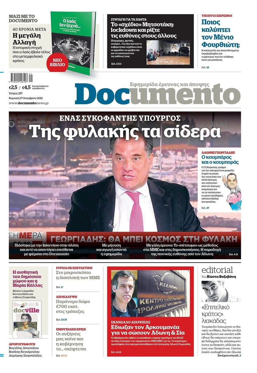 Αποκαλυπτικό και αυτή την Κυριακή το Documento του Κωστα Βαξεβάνη.