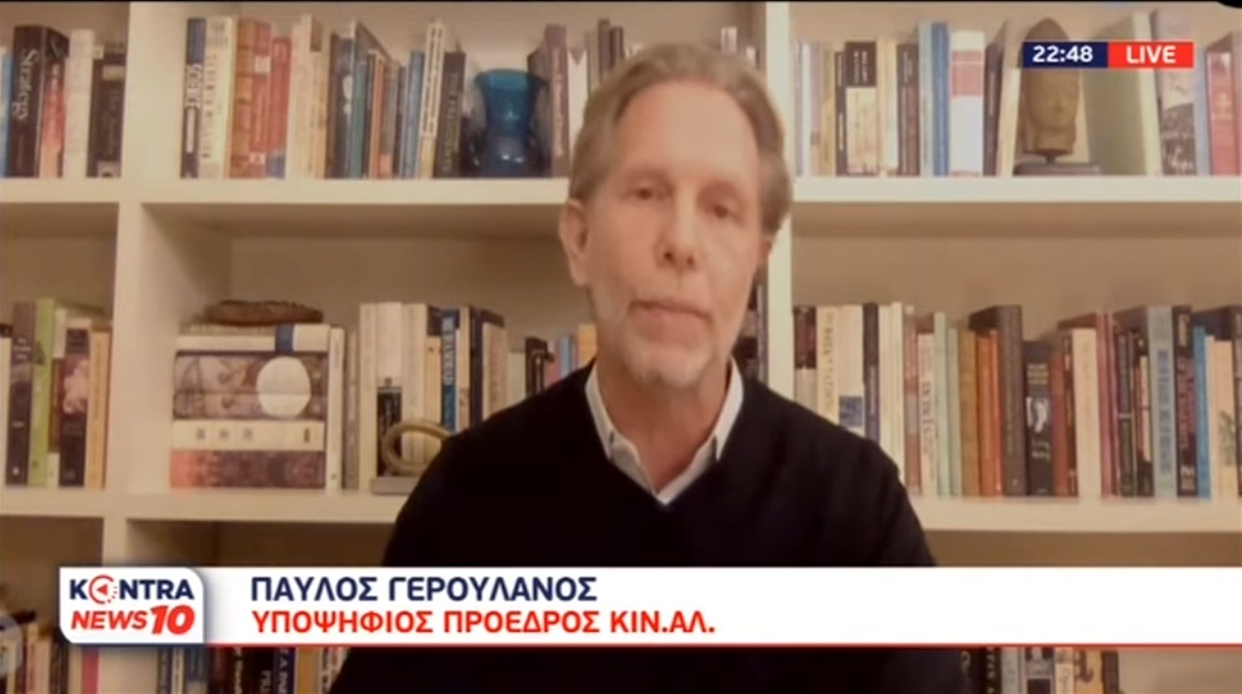 Ο υποψήφιος πρόεδρος για το Κίνημα Αλλαγής Παύλος Γερουλάνος στο στο δελτίο Kontra News 10 με τον Γιώργο Μελιγγώνη