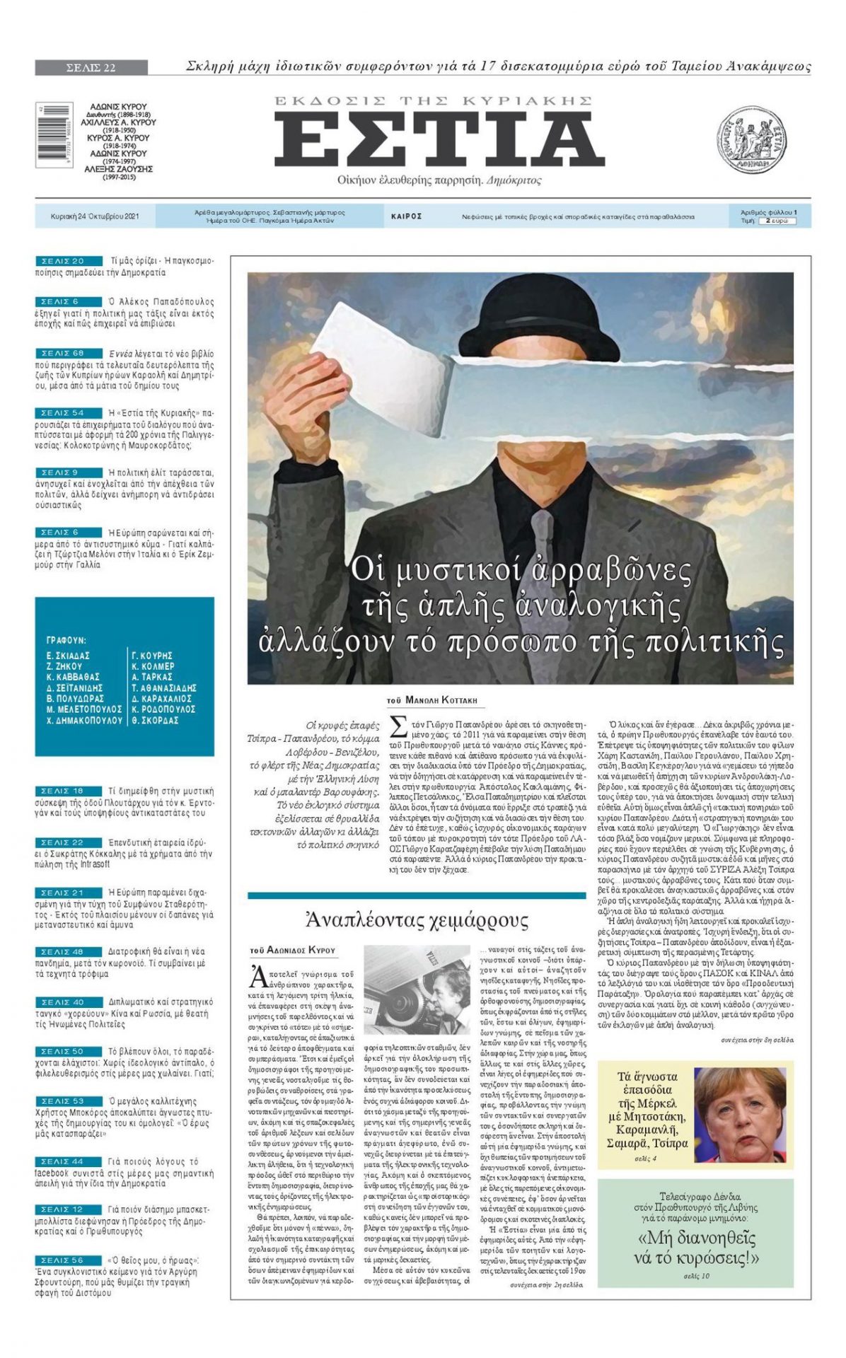 Στην Εστία της Κυριακής: Big bang μεγάλων ανατροπων σέ κόμματα, ηγεσίες, συμμαχίες