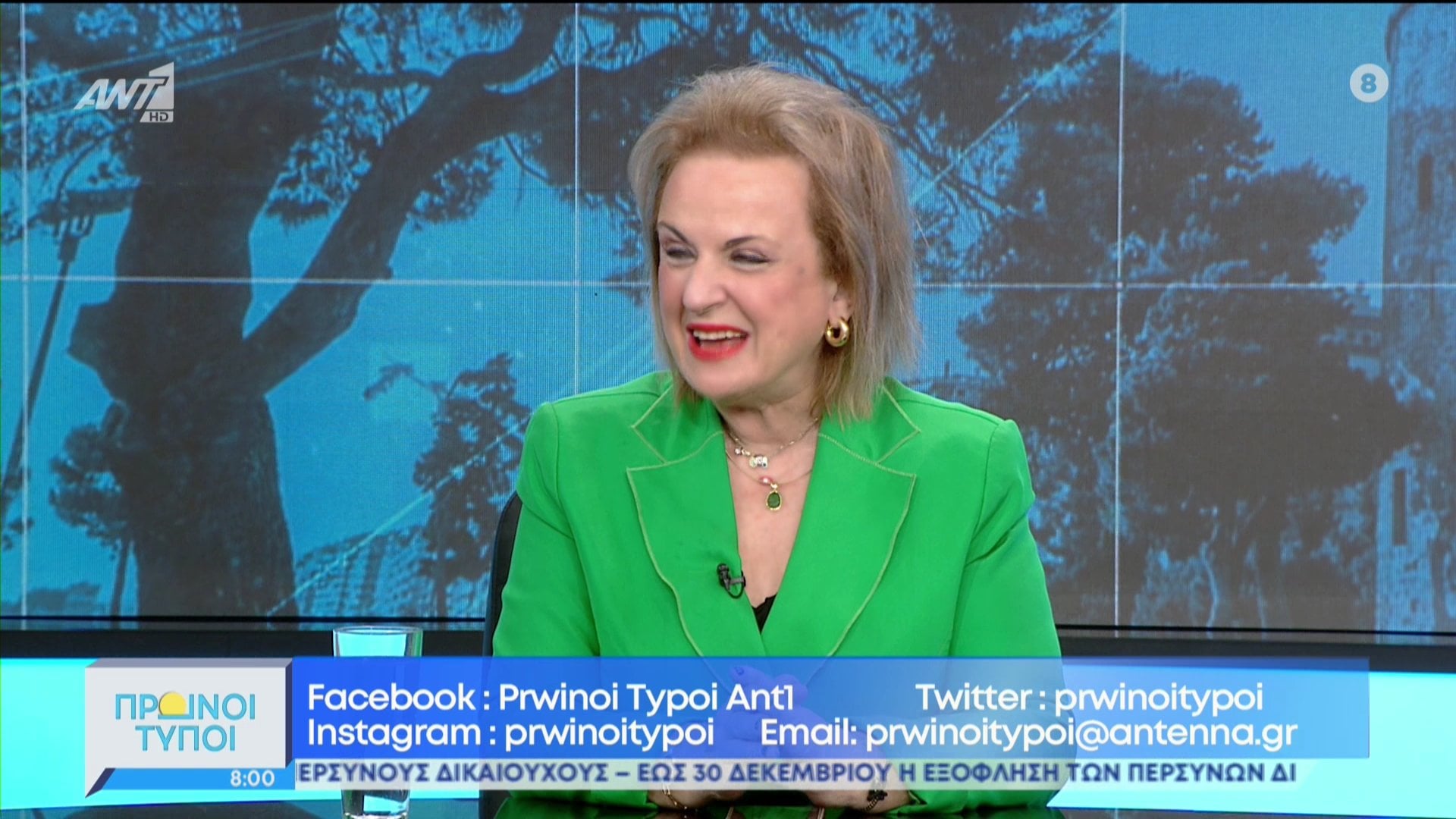 Εμφάνιση με πράσινο σακάκι εκανε η Ματίνα Παγώνη στην πρωινή εκπομπή του ΑΝΤ1, με τον παρουσιαστη της εκπομπης, Παναγιώτη Στάθη να σχολιάζει: