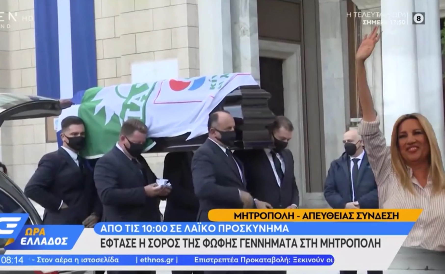 Πάνω στο φέρετρο της Φώφης Γεννηματά βρίσκονται τρεις σημαίες, η Ελληνική σημαία, η σημαία του ΠΑΣΟΚ και του Κινήματος Αλλαγής. Πρωτοσελιδα – Ειδήσεις