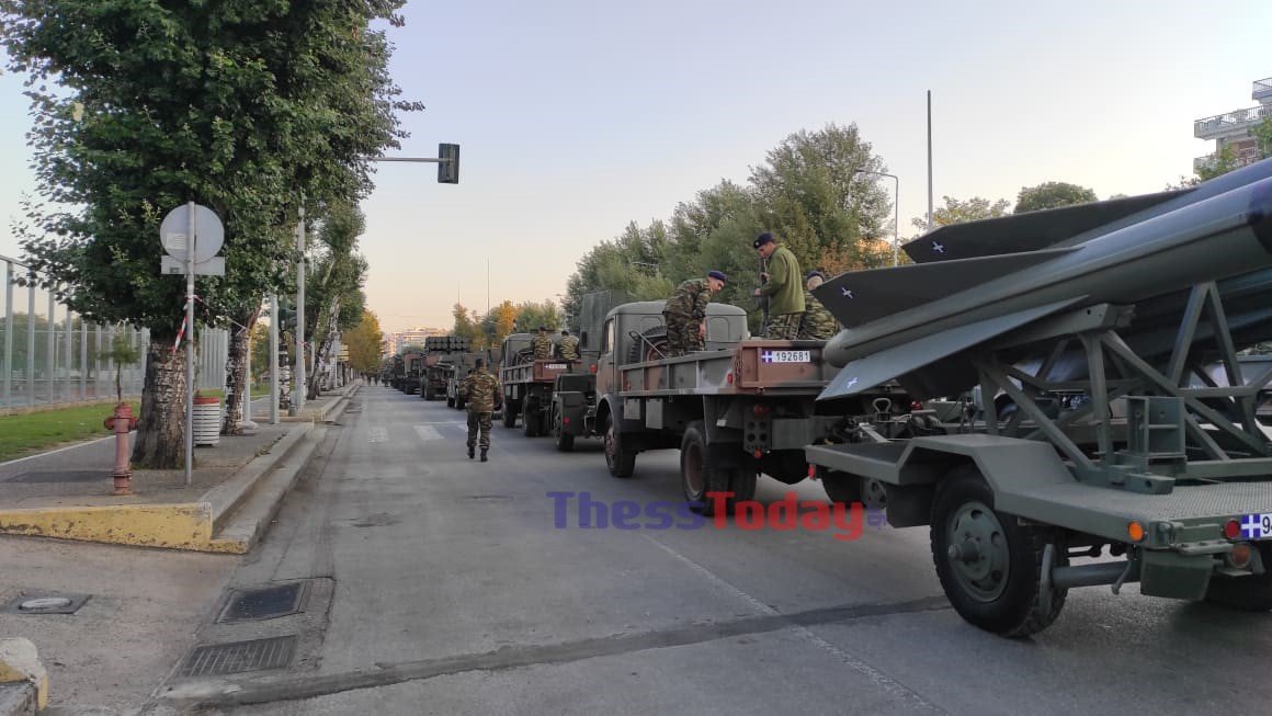 Οι τελευταίες προετοιμασίες για τη στρατιωτική παρέλαση στη Θεσσαλονίκη, που θα πραγματοποιηθεί στη Λ. Μεγάλου Αλεξάνδρου σε λίγα λεπτά.