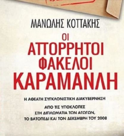 Διαβάζουμε ότι κυκλοφόρησε νέο βιβλίο με την ονομασία «Οι απόρρητοι φάκελοι Καραμανλή», στο οποίο ο συγγραφέας (Μανώλης Κοττάκης – διευθυντής της «Εστίας», κανένα πρόβλημα με τον συγγραφέα βέβαια) φανερώνει πολλά και διάφορα για την πρωθυπουργία Κώστα Καραμανλή (νεότερου).