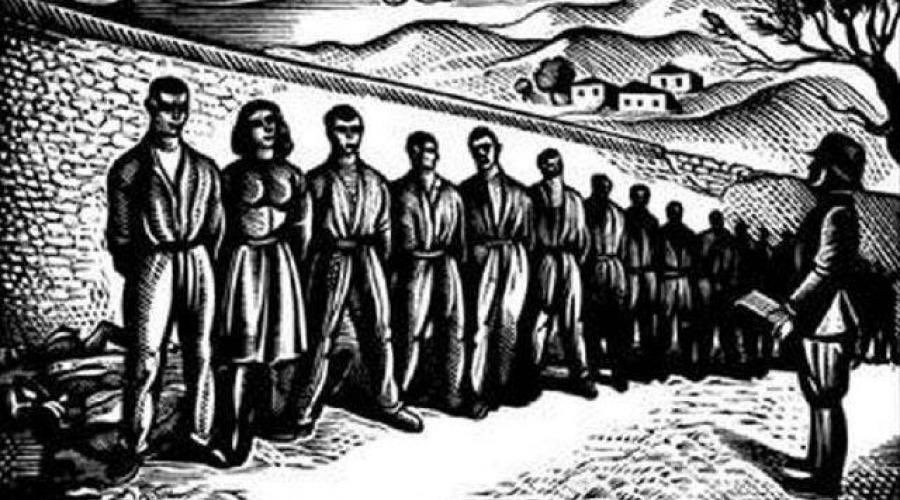 Στο τέλος εξοικειώνεται με την ιδέα του θανάτου.Γιαυτό το λόγο σαν ακούει τα βαριά βήματα που έρχονται να τον πάρουν δεν είναι παράδοξο που νοιώθει μια ανακούφιση και γαλήνη.Οδηγούνται στο Σκοπευτήριο Καισαριανής.Παρίστανται πάντα ιερωμένοι κι αφού διαβάσουν την συγχωρητική ευχή και κοινωνήσουν όσους μελλοθάνατους επιθυμούν εκτελούνται απ το Γερμανικό ή Ιταλικό απόσπασμα.