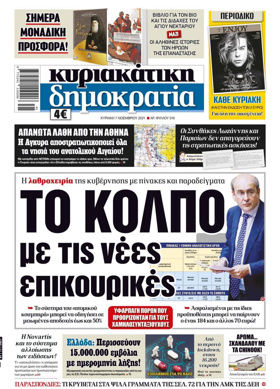 Αποκαλυπτική και αυτή την Κυριακή η εφημεριδα Δημοκρατια.
