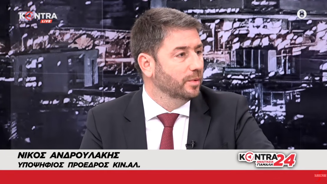 Ο υποψήφιος Πρόεδρος για τον Κίνημα Αλλαγής Νίκος Ανδρουλάκης Ευρωβουλευτής Κίνημα Αλλαγής – ΠΑΣΟΚ, Μέλος της Προοδευτικής Συμμαχίας Σοσιαλιστών και Δημοκρατών στο Kontra24 με την Αναστασία Γιάμαλη