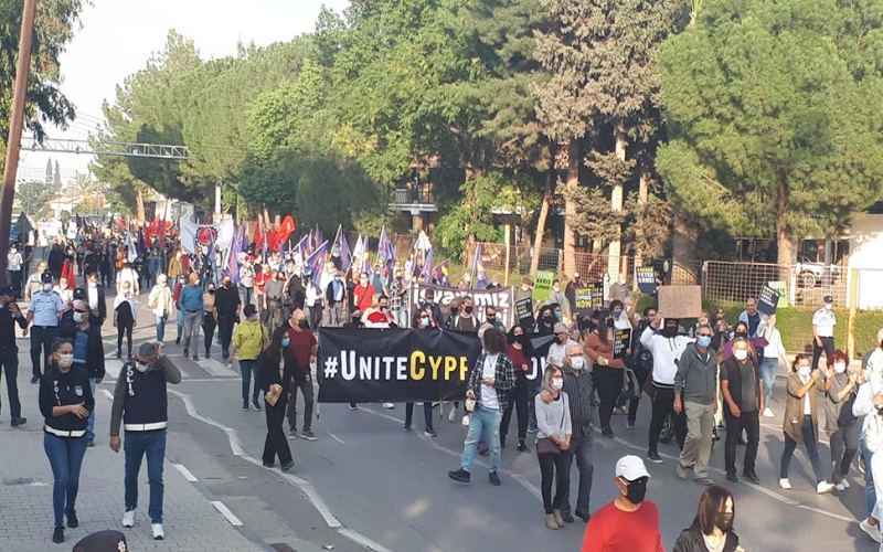 Όπως μεταδίδεται από τα κατεχόμενα οι συμμετέχοντες κρατούσαν πανό στα οποία αναγράφονταν φράσεις όπως «Δεν θέλουμε να μεταναστεύσουμε», «Όχι στην ιδιωτικοποίηση», «Ούτε διχοτόμιση, ούτε προσάρτηση, Ενωμένη Ομόσπονδη Κύπρος» και φώναξαν συνθήματα όπως «Η ειρήνη στην Κύπρο δεν μπορεί να εμποδιστεί» και «Αυτή η χώρα είναι δική μας».