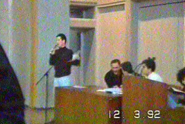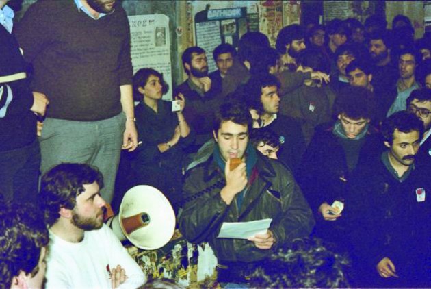 Στο βήμα ο Γιώργος Κατρούγκαλος, κεντρικός τότε συνδικαλιστής της ΚΝΕ στη σχολή(φωτογραφία 3