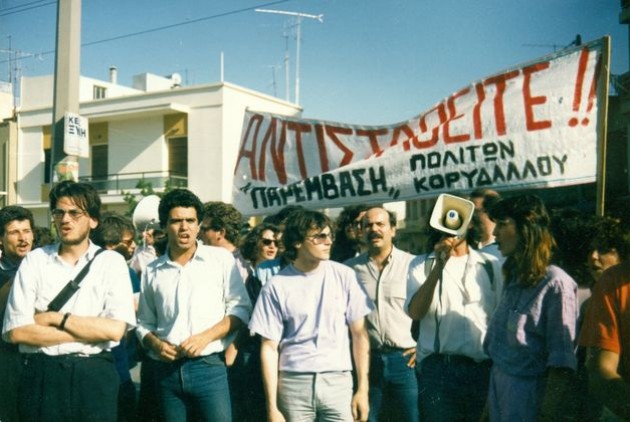 Στο πεδίο των μαζικών κινημάτων, η δεκαετία του ’80 γνώρισε την πρωτοτυπία μιας βραχύβιας αλλά καθοριστικής σύζευξης ανάμεσα στο «πεζοδρόμιο» και τους υπουργικούς προθαλάμους.