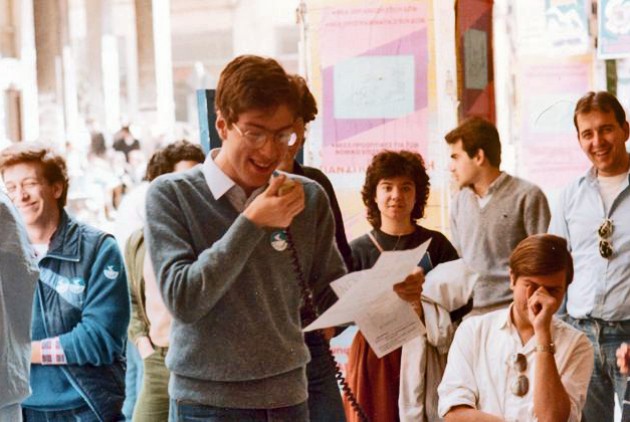 Μεταξύ των συνωστιζόμενων στο προεδρείο διακρίνεται ο Κωστής Χατζηδάκης, δευτεροετής με πλούσια κόμη και ανερχόμενο ήδη στέλεχος της ΔΑΠ-ΝΔΦΚ(φωτογραφία 4). Πρωτοσελιδα – Ειδήσεις