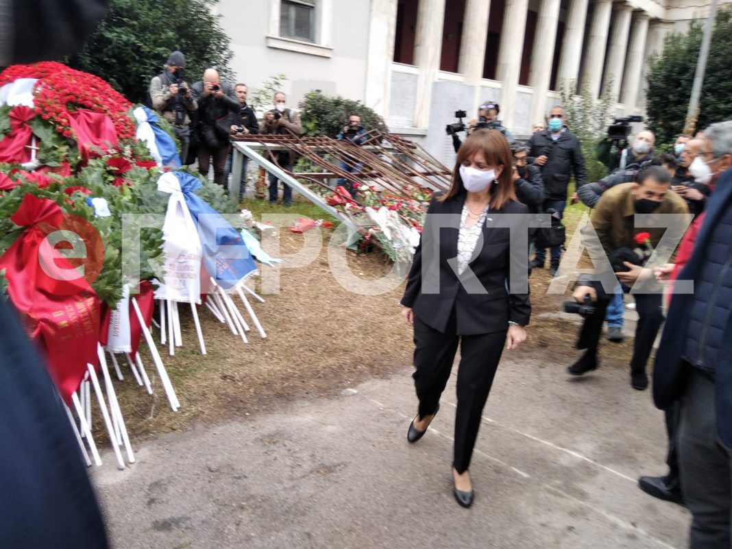 Πολυτεχνείο 2021: Ένα λεπτό και πολυ ήταν. Τόσο διήρκεσε η παρουσία της Προέδρου της δημοκρατίας Κατερίνας Σακελλαροπουλου στο Πολυτεχνείο. Κατέφθασε πεζή από τη Στουρνάρη, κατέθεσε στεφάνι αλλά ενώ είχε προγραμματίσει να κάνει δήλωση τελικώς αποχώρησε εσπευσμένα λόγω συνθημάτων