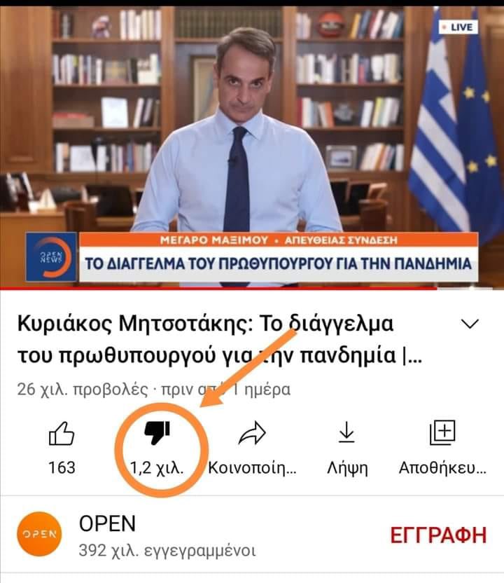 Χαρακτηριστικό παράδειγμα το καναλι του open οπου τα αρνητικά σχόλια ειναι πάνω απο 1.200 ενώ τα θετικά like μόλις 163….