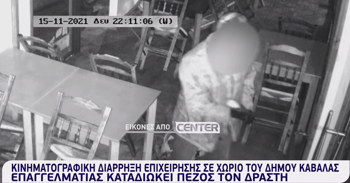 Το συμβάν συνέβη την περασμένη δευτέρα σε επιχείρηση εστίασης, στην Καβάλα. Εκει ένα διαρρήκτης έσπασε με τσεκούρι την πόρτα επιχείρησης, μπήκε μεσα και κατευθύνθηκε προς την ταμειακή μηχανή.