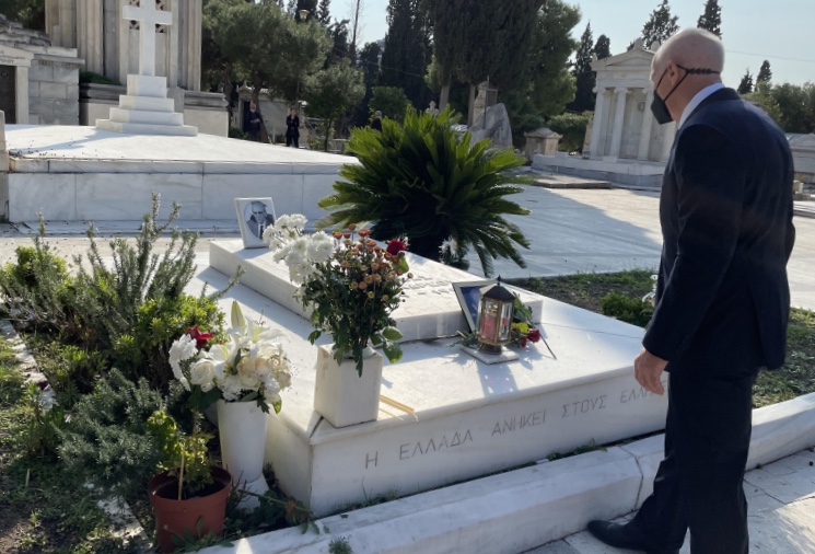 Μετά το μνημόσυνο της Φωφης Γεννηματα ο Γιώργος Παπανδρέου επισκεφτηκε τον ταφο του πατέρα του, Γιώργου Παπανδρέου οπου άφησε ένα λευκό τριαντάφυλλο.