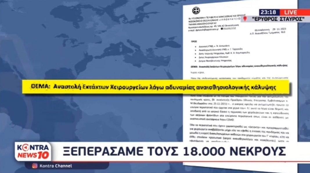 Σύμφωνα με το εν λόγω έγγραφο, λόγω της συσσώρευσης 12 διασωληνωμένων ασθενών με κορωνοϊό στα χειρουργεία του νοσοκομείου, «το σύνολο των γιατρών του αναισθησιολογικού τμήματος μεταφέρεται εκεί για να διασώσει τις ζωτικές λειτουργίες των ασθενών με κορωνοϊό που δεν είχαν την τύχη να μπουν σε ΜΕΘ και αξίζουν όλη τη φροντίδα και την προσοχή μας».
