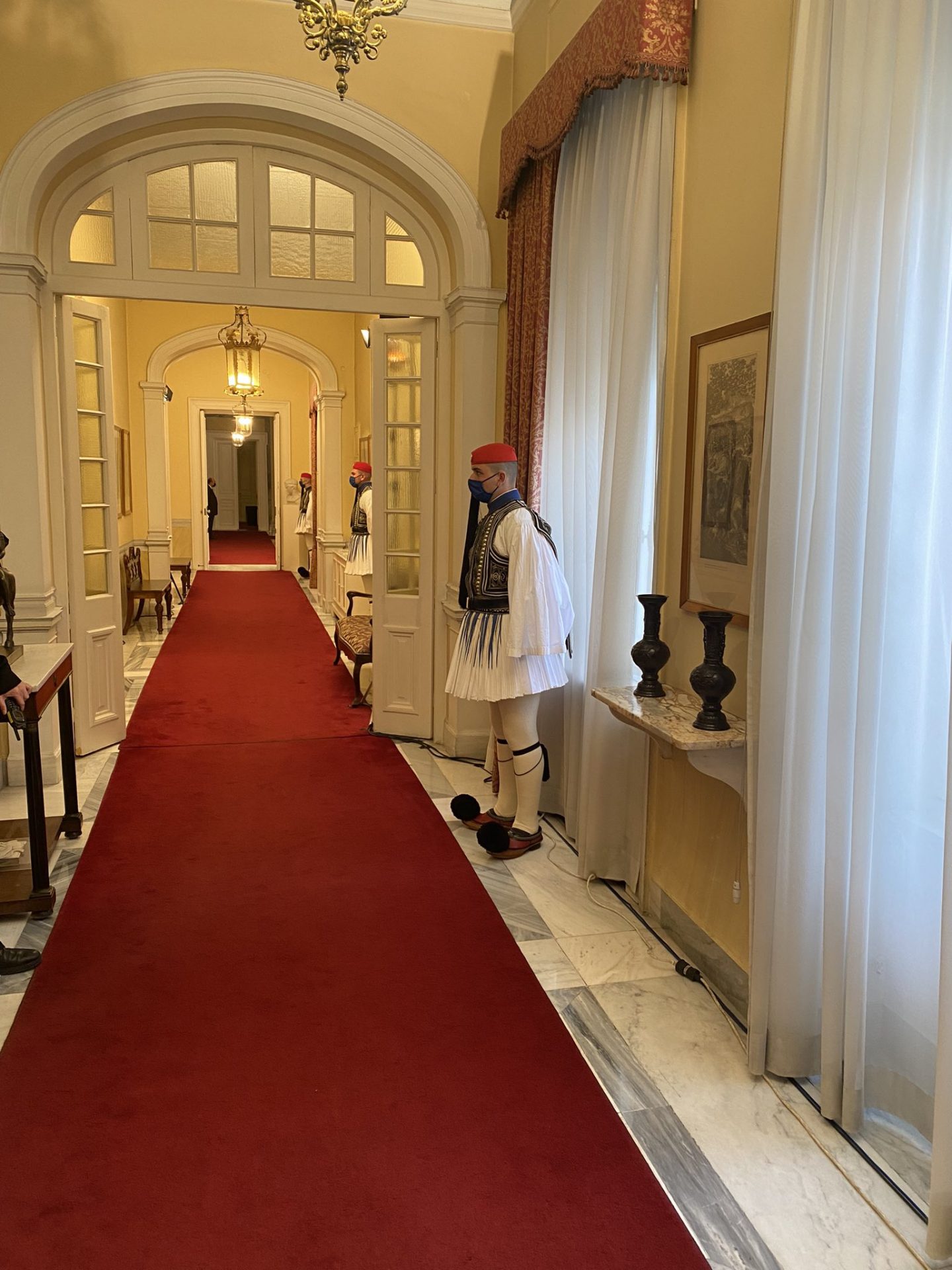 Μαζί με τα κόκκινα χαλιά άπλωσαν και μπαλαντέζες στο Προεδρικό Μέγαρο για τον Παπα