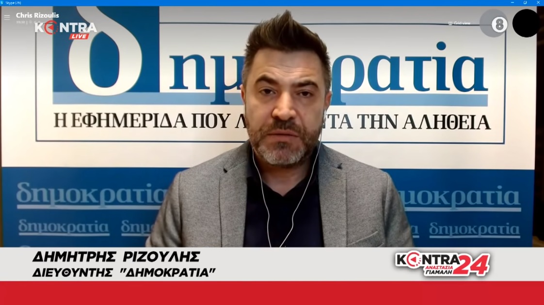Ο Δημοσιογράφος Δημήτρης Ριζούλης και Διευθυντής της εφημερίδας ΔΗΜΟΚΡΑΤΙΑ στο Kontra24 με την Αναστασία Γιάμαλη.