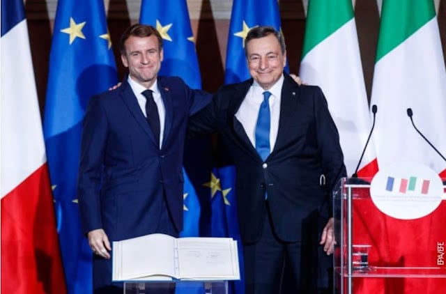 Στα τέλη Νοεμβρίου, ο Ιταλός πρωθυπουργός Μάριο Ντράγκι και ο Γάλλος πρόεδρος Εμανουέλ Μακρόν υπέγραψαν διμερή συμφωνία στο Ανάκτορο Κουιρινάλε της Ρώμης για την ενίσχυση των σχέσεων μεταξύ των δύο χωρών στους τομείς της άμυνας, της οικονομίας, της βιομηχανίας, της δημοσιονομικής πολιτικής, της τεχνολογίας, του πολιτισμού και του διαστήματος. Η Συμφωνία Κουιρινάλε φέρνει νέους τόνους στην ευρωπαϊκή πολιτική και μπορεί να ερμηνευθεί ως αντιτουρκική και προληπτικά αντιγερμανική. Η πρώτη πτυχή είναι η ασφάλεια-γεωπολιτική και η δεύτερη είναι η οικονομική-στρατηγική.