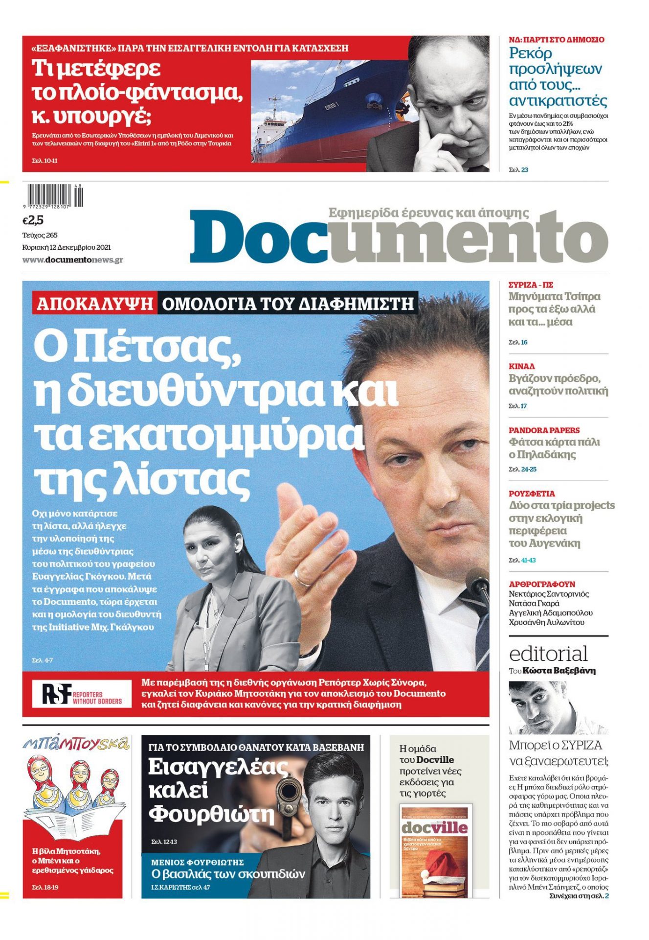 Αποκαλυπτικη και αυτή την Κυριακή η εφημεριδα Documento του Κώστα Βαξεβάνη.
