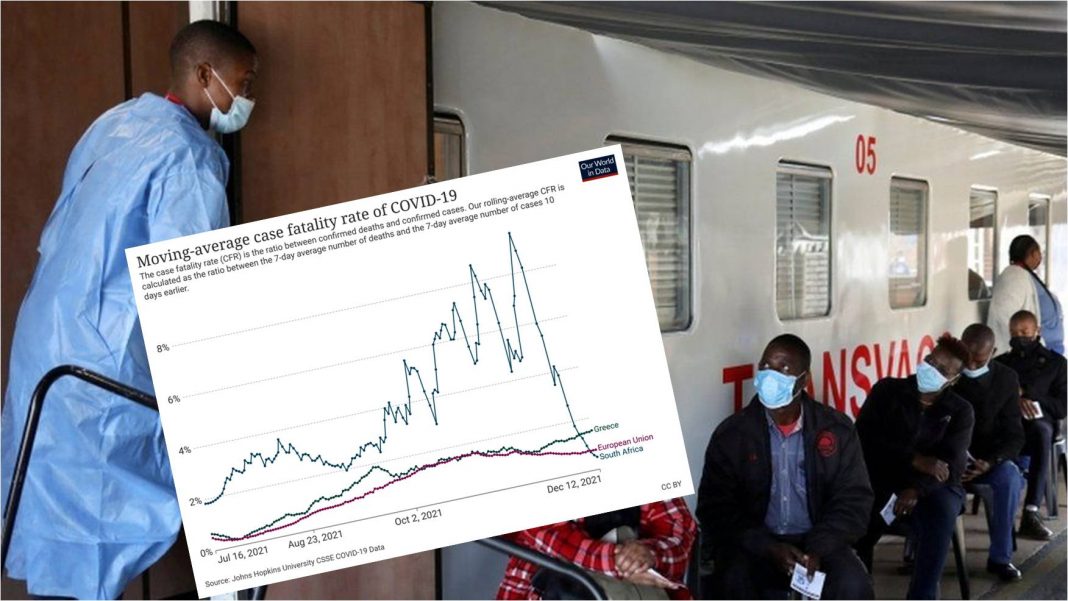 Το CFR της Νότιας Αφρικής είναι χαμηλότερο από αυτό του Ηνωμένου Βασιλείου. Να σημειωθεί ότι το ποσοστό θνησιμότητας τους είναι τώρα 1 στους 200 – το χαμηλότερο που ήταν σε όλη την πανδημία και 10 φορές χαμηλότερο από ότι τον περασμένο Σεπτέμβριο.