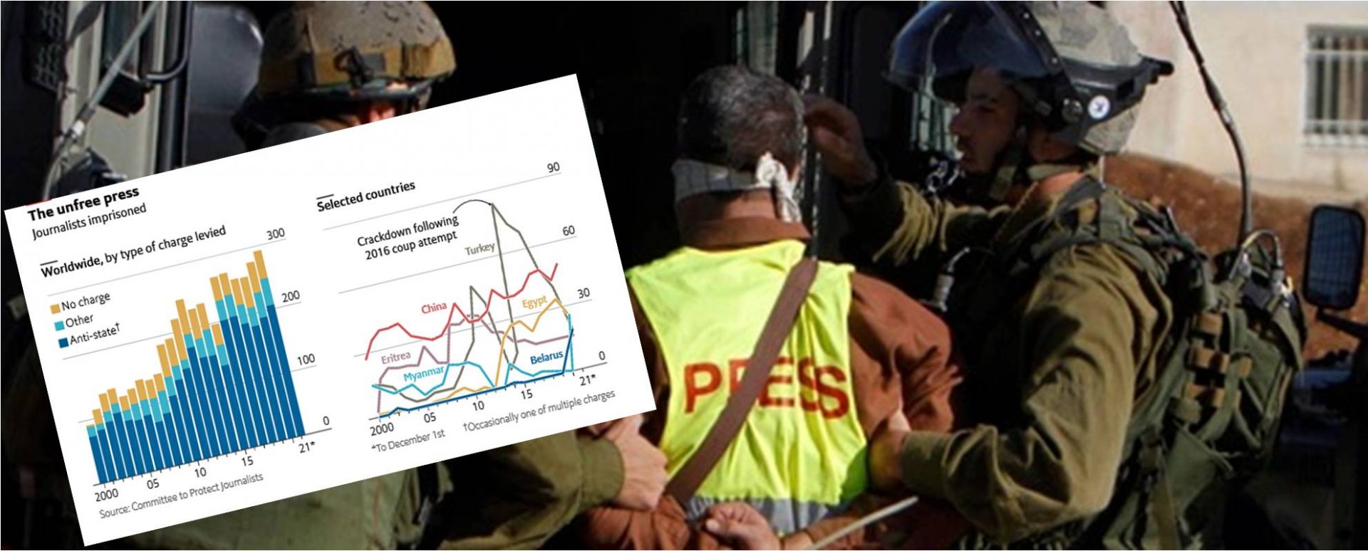 Το 70% των ρεπόρτερ που εκτίουν ποινές ή είναιυπό κράτηση το 2021 κατηγορήθηκαν για εγκλήματα κατά του κράτους. Αλλά το 16% έχει φυλακιστεί για διάδοση «ψευδών ειδήσεων». Σχεδόν το ένα έβδομο δεν αντιμετώπισε καμία κατηγορία. Τα αυταρχικά καθεστώτα γίνονται όλο και πιο μισαλλόδοξα με τον Τύπο και σε έναν κόσμο που αποσπάται η προσοχή από τον Covid-19, οι κατασταλτικές κυβερνήσεις επωφελούνται. Σε πολλές χώρες οι δημοσιογράφοι έχουν αποτραπεί από την πρόσβαση σε πληροφορίες και έχουν περιοριστεί τα κριτικά ρεπορτάζ. Σε άλλες έχουν συλληφθεί για την κάλυψη του Covid.