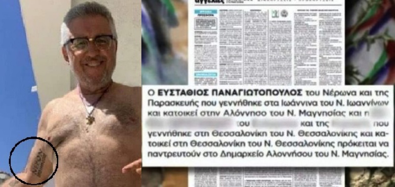 Μια από τις πιο παράξενες παραμέτρους του σκανδάλου της εκπομπής Ράδιο Αρβύλα. Ο Στάθης Παναγιωτόπουλος έχει τατουάζ “Νέρων” στο χέρι του – κι αυτό είναι το όνομα του πατρός του, όπως φανερώνει η αγγελία γάμου που έβαλε!