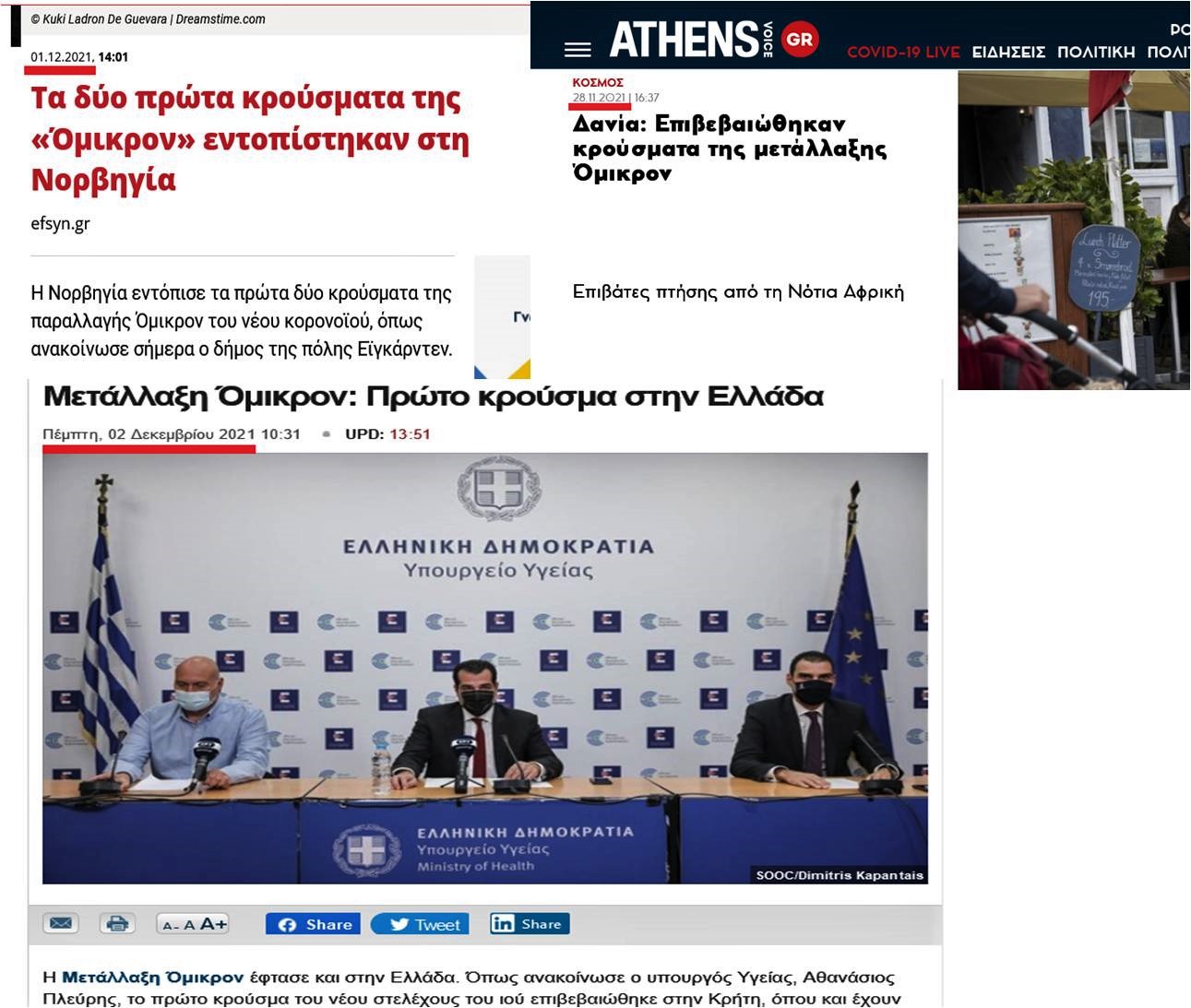 Στην Ελλάδα, όπου η εμφάνιση της Όμικρον έγινε ταυτόχρονα με την Νορβηγία και με καθυστέρηση 3 ημερών σε σχέση με την Δανία, φαίνεται ότι, με τα μέχρι τώρα στοιχεία δεν έχει αρχίσει η εξάπλωση και η κυριαρχία της Όμικρον..
