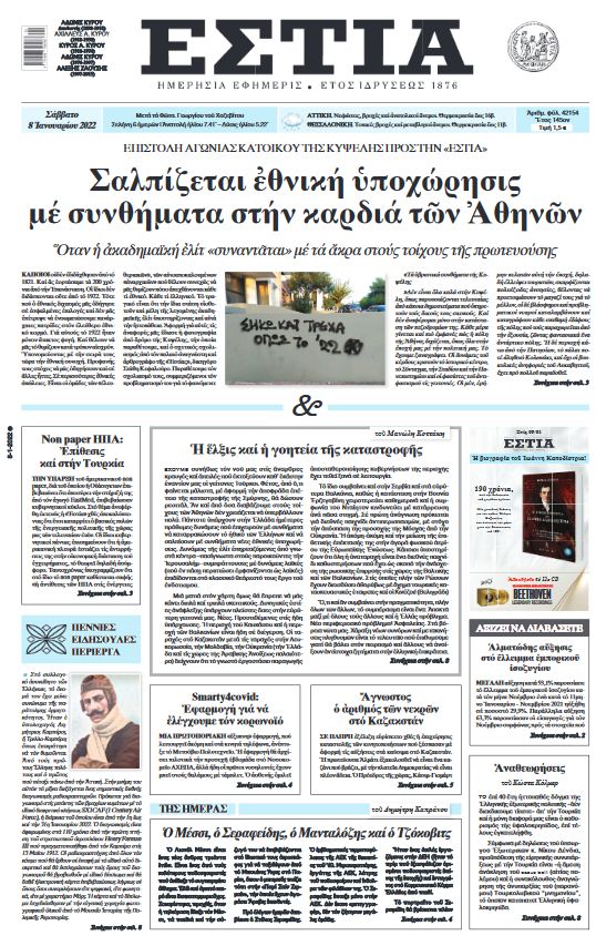 MEDIAΣαλπίζεται εθνική υποχώρηση με συνθήματα στην καρδιά των Αθηνών8/01/2022 - 7:10πμΔΙΑΒΑΣΤΕ ΕΠΙΣΗΣ Την Κυριακή 30/11 με την Εστία της Κυριακής: Το ημερολόγιο του Στρατηγού ΣκόμπιΤην Κυριακή 30/11 με την κυριακάτικη «δημοκρατία»: Σύνταγμα Χωροφυλακής ΑθηνώνΤο πρωτοσέλιδο της εφημερίδας Θεσσαλονίκη που κυκλοφορεί σήμερα ΣάββατοΜε σημαντικές προσφορές κυκλοφορεί η εφημερίδα Θεσσαλονίκη σήμερα ΣάββατοΤα πρωτοσέλιδα των εφημερίδων σήμερα ΣάββατοΤo Σάββατο 29/11 με την Εστία: Κλασσικά παραμύθιαΤο Σάββατο 29/11 με την «δημοκρατία»: Ο πόλεμος του πετρελαίουΤα πρωτοσέλιδα των εφημερίδων σήμερα Παρασκευη Στην εφημεριδα Εστια που κυκλοφορεί σημερα. Πρωτοσελιδα – ΕιδήσειςΕΦΗΜΕΡΙΔΑ ΕΣΤΙΑ ΔΗΜΟΦΙΛΗ Το τελευταίο αντίο στον 19χρονο Ραφαηλ: Το φέρετρο έφτασε στην εκκλησία τυλιγμένο στη γαλανόλευκη στους ώμους στρατιωτικών που δεν μπορούσαν να συγκρατήσουν τα δάκρυά...Επιβίωσε από την τρομοκρατική επίθεση της 11ης Σεπτεμβρίου, για να τον σκοτώσουν στο ξύλο τρία καθάρματα…Εκτακτο διάγγελμα ΖελενσκιBροχή σκανδάλων και εισαγγελέας στο Ίδρυμα Νεολαίας και Δια Βίου ΜάθησηςΙστορική η «κατρακύλα» Μητσοτακη χωρίς σημεία ανάκαμψηςΑύριο η κηδεία του 19χρονου Ραφαηλ: “Ένα κοπέλι έσβησε πο μια χειροβομβίδα” γράφει συντετριμμένος ο πατέρας τουΣυγκλονίζει ο πατέρας του 19χρονου στρατιώτη Ραφαήλ που έχασε τη ζωή του στη ΡόδοΙσλαμοφασιστόμουτρα που εισήλθαν στη χώρα ως «Ασυνόδευτα ανήλικα» βίασαν βάναυσα γυναίκα στη Γαλλία