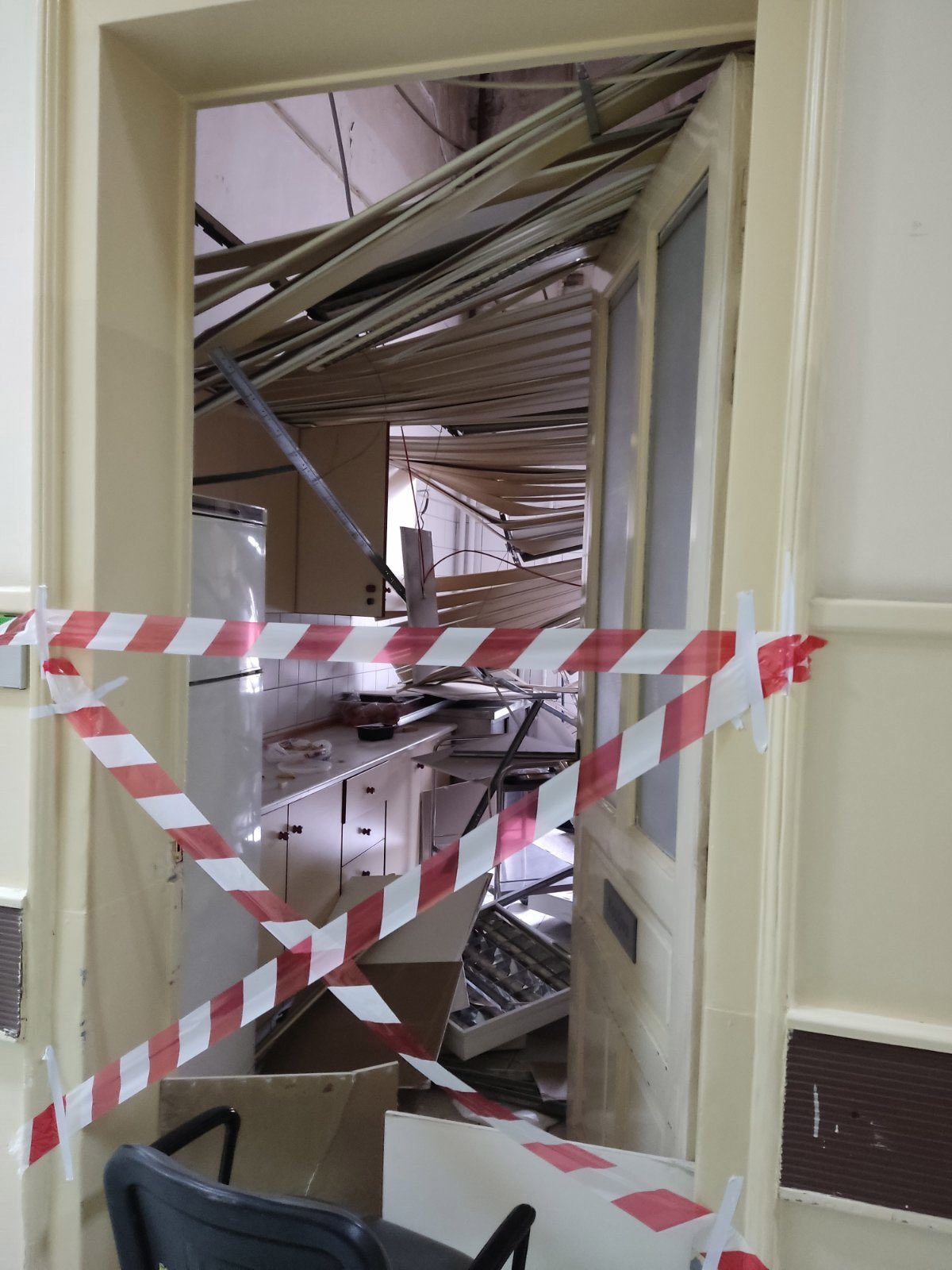 Στις 12 το μεσημέρι στον Ευαγγελισμό, στη Μονάδα Μεταμόσχευσης Οργάνων στο 2ο όροφο του παλαιού κτιρίου στη κουζίνα που είναι εντός της Μονάδας κατέρρευσε η ψευδοροφή μεγάλου βάρους.