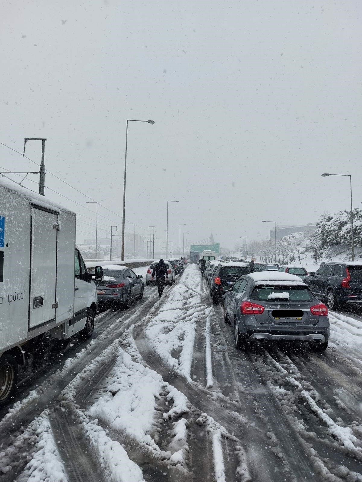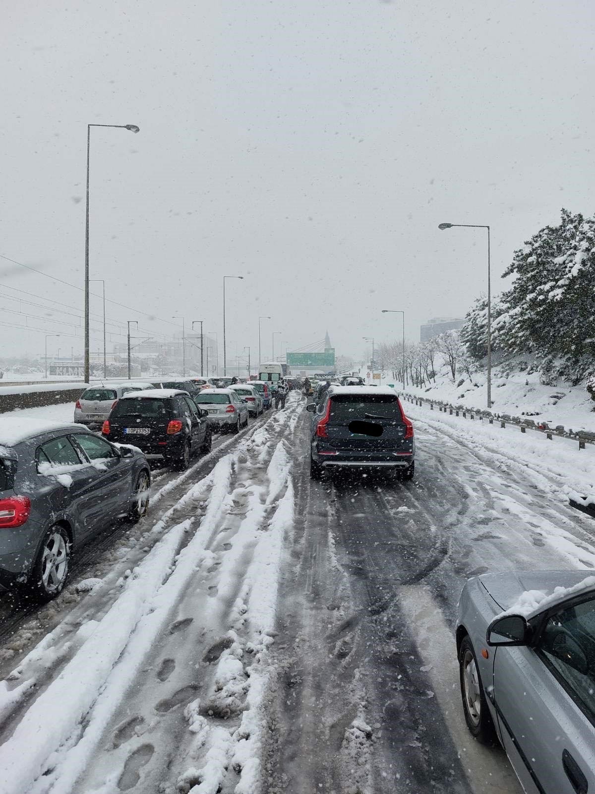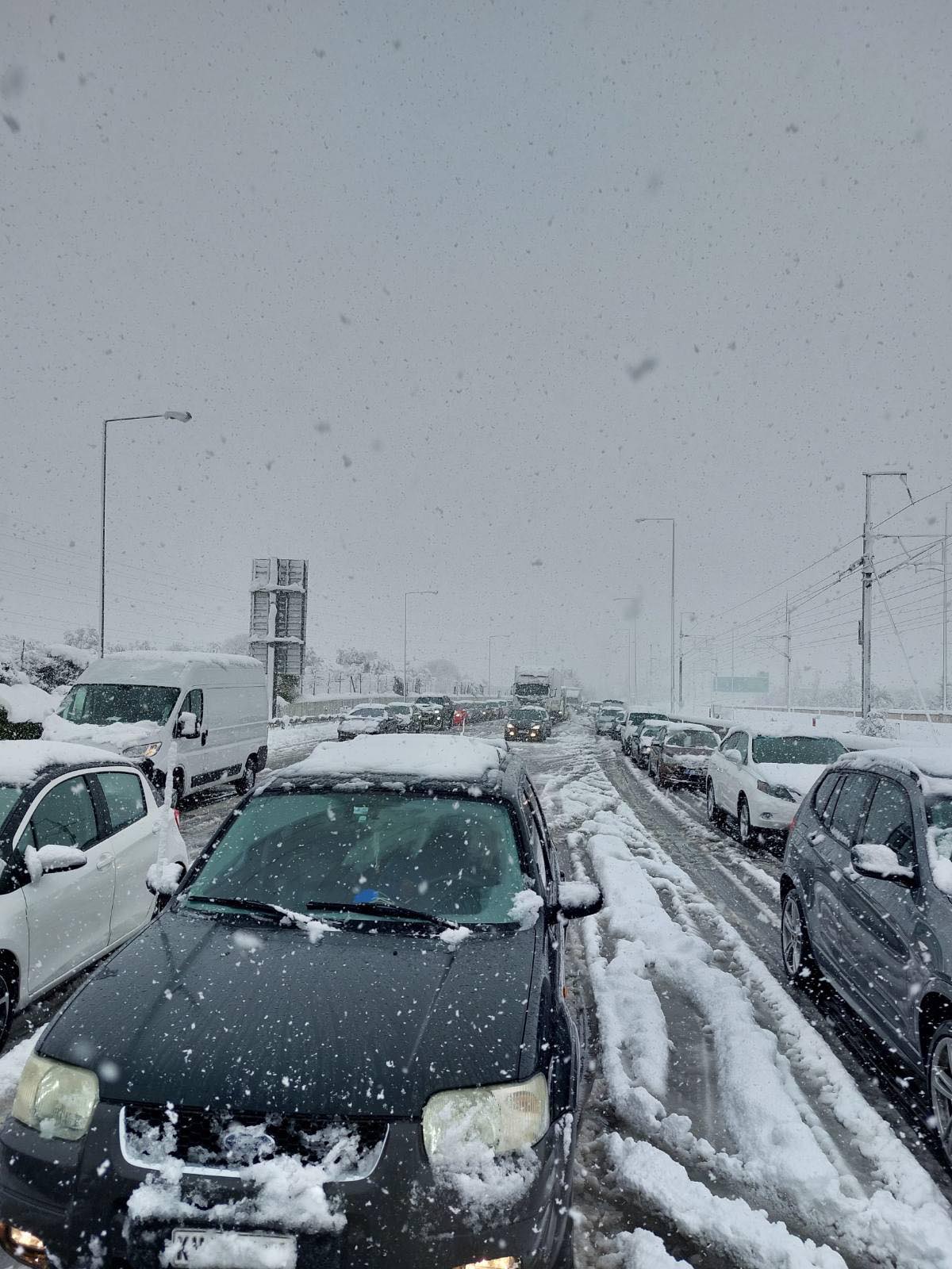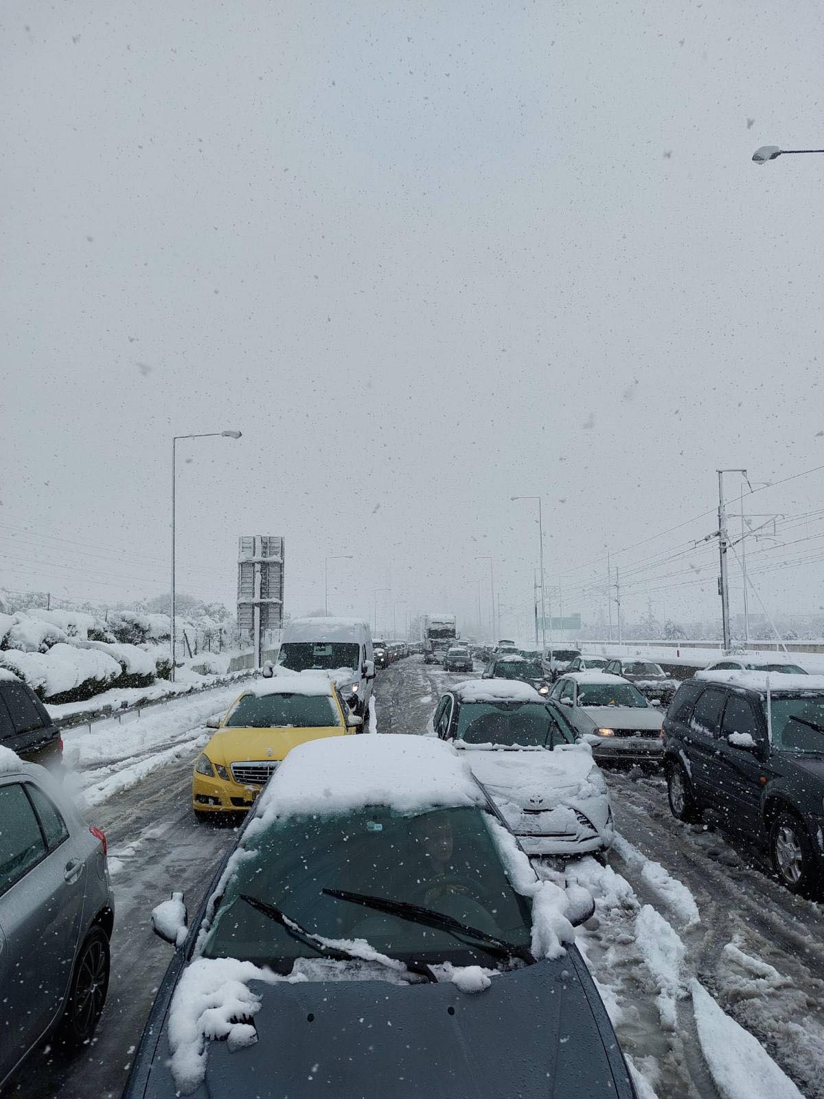 «Διευκρινίζεται ότι σε ορισμένα σημεία του αυτοκινητόδρομου, ειδικότερα στη σύνδεση της σήραγγας Βριλησσίων με την Περιφερειακή Υμηττού και στην περιοχή του Γέρακα στο ρεύμα προς Ελευσίνα δημιουργήθηκαν έντονα κυκλοφοριακά προβλήματα εξαιτίας οχημάτων που ακινητοποιήθηκαν είτε λόγω μηχανικής βλάβης, είτε φόβου και έλλειψης εμπειρίας των οδηγών τους, με αποτέλεσμα να διακοπεί η κυκλοφορία και να δημιουργηθούν μεγάλες ουρές».